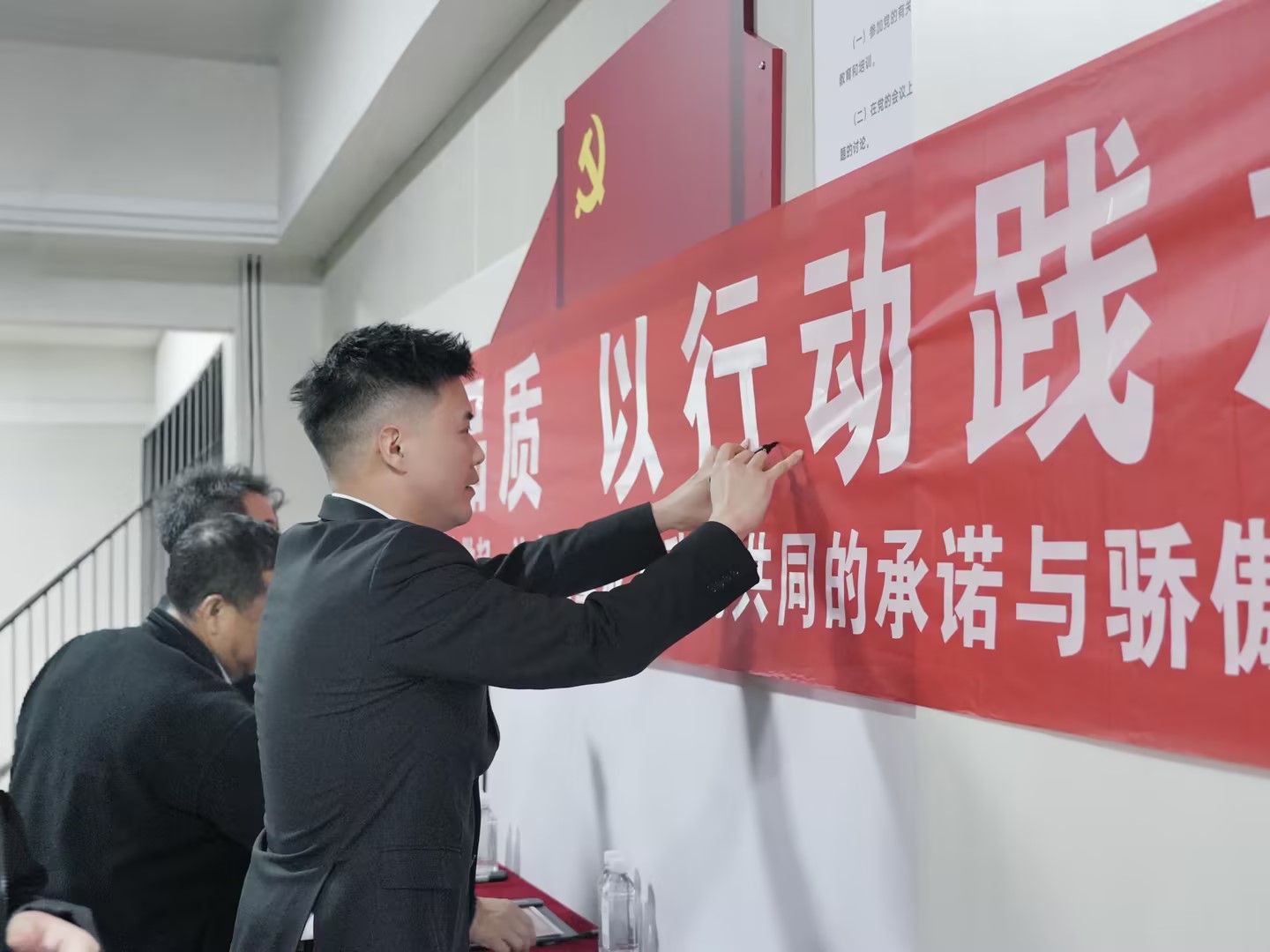 宣誓儀式結束后,與會人員有序地在“以匠心鑄品質,以行動踐承諾。”的紅色橫幅上,鄭重地簽下自己的名字。