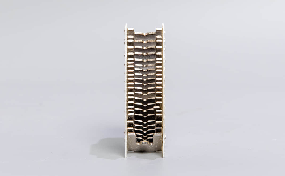 五金沖壓零部件通過放料帶、切邊,沖孔等多道工序的折彎,利用絲攻機螺牙、鉚合,落料等完成錯綜復雜的沖壓加工工藝。我司五金沖床設備種類齊全,并以模具為核心,通過改變成型鑲塊得到各式各種的五金零部件,集切邊、沖孔、成型、翻邊、攻絲、鉚合、落料于一體。通過中高速的設備達到零部件高精度和高穩定性,保證其壽命。我司接受改模,改型,制模等業務。并廣泛應用于電氣、醫療,汽配,生活等與人們日常生活息息相關的領域。
